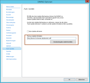 In der Software gelangen Sie über daVinci-Optionen → Auto-Update in das folgende Menü: